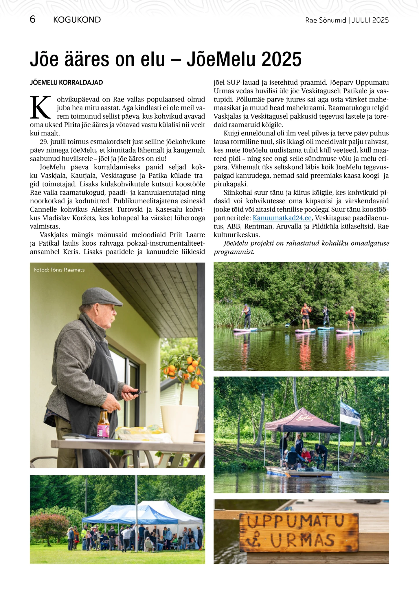 Sel suvel sündis Patika, Kautjala, Veskitaguse ja Vaskjala külade ning Rae valla raamatukogu koostöös täitsa uus sündmus JõeMelu 2025. Jagame teiega kokkuvõtlikku artiklit, mis ilmus vallalehe Rae Sõnumid juulikuu numbris.